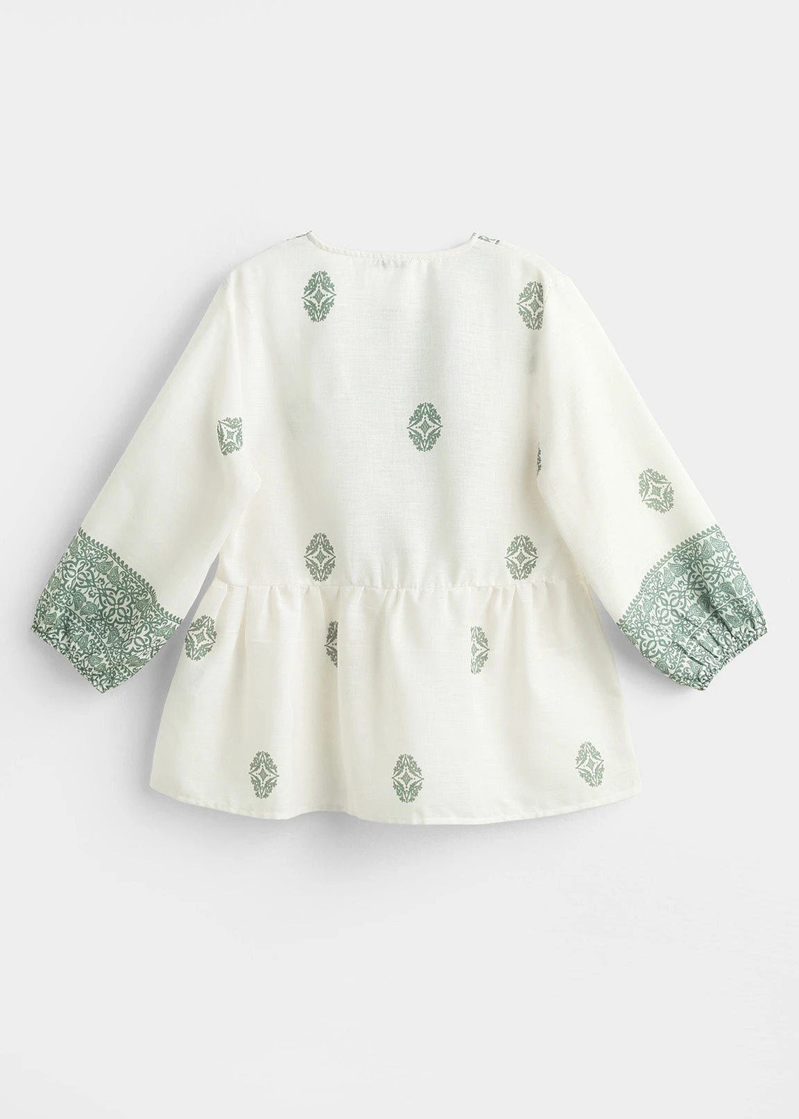 Lässiger Schnitt trifft auf verspielte Details! Diese Bluse kombiniert einen entspannten Fit mit kunstvollen Mustern und sorgt für einen stilvollen, mühelosen Look.