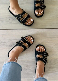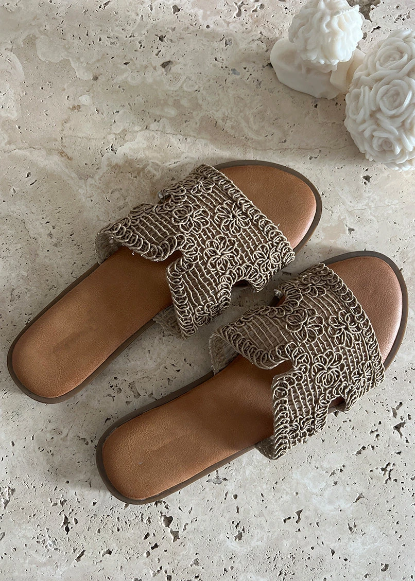Diese flachen Sandalen sind ein echter Hingucker – leicht, bequem und mit liebevollen Details. Der breite Riemen aus gehäkeltem Material verleiht dem Schuh eine besondere Struktur und einen femininen Touch. Die Innensohle in Lederoptik sorgt für angenehmen Tragekomfort, auch an warmen Tagen. Ideal für den Sommer, egal ob für den Alltag, den Urlaub oder ein entspanntes Treffen mit Freunden. Schnell hineinschlüpfen und gut aussehen – ganz ohne Aufwand.